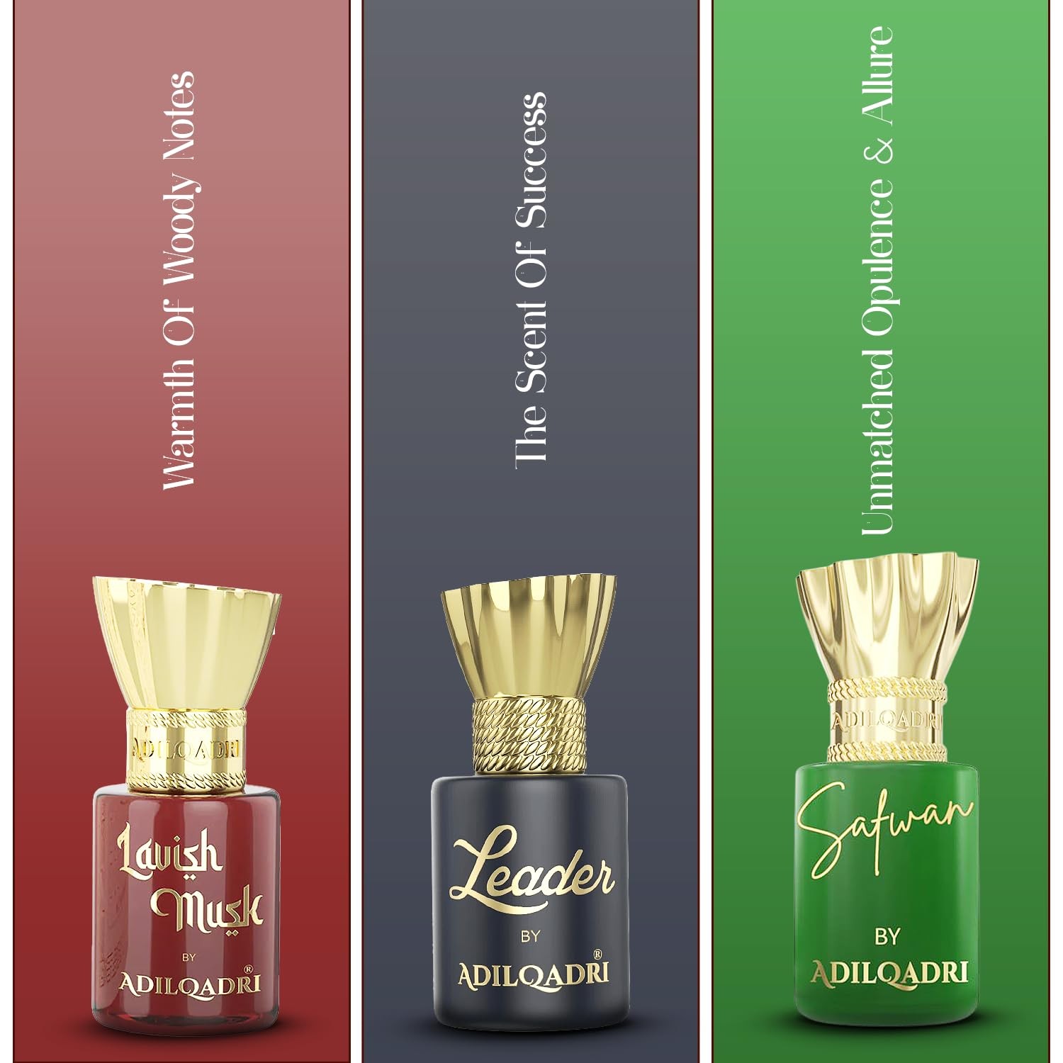 Adilqadri Assorted Luxury Alcohol Free Long Lasting Roll-on Attar Perfume Gift Set for Unisex Alcohol-free for All Occasions (6 Ml/0.2 Fl Oz Each)