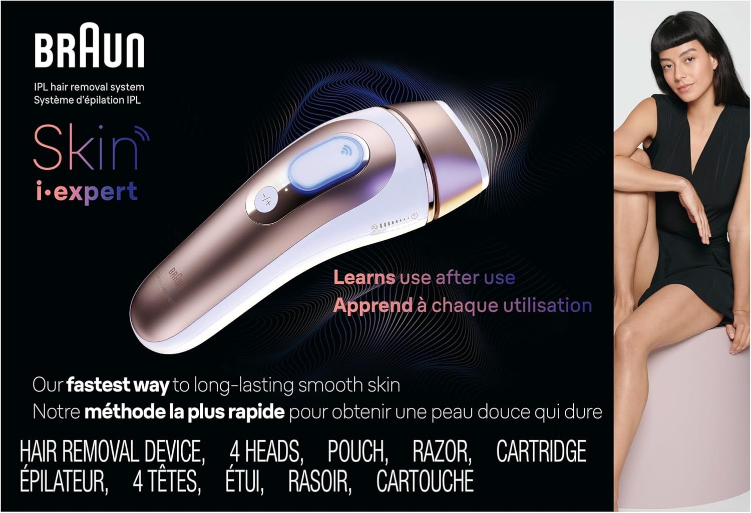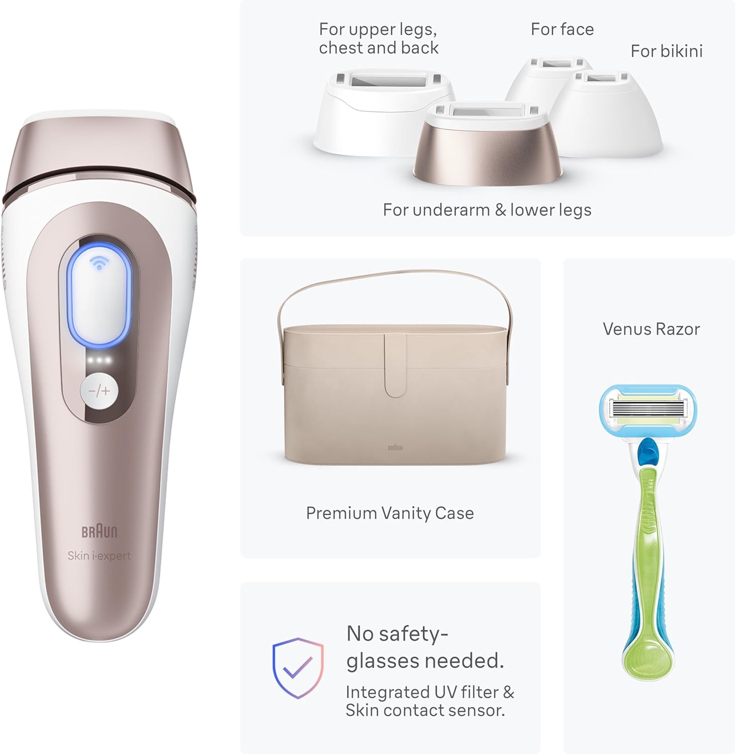 Braun IPL Skin i·expert, at Home Laser Hair Removal, Permanent Visible Hair Reduction, Holiday Gifts for Women and Men with Free App, SMART IPL, Vanity Case, Venus Razor, 4 Smart Heads, PL7387