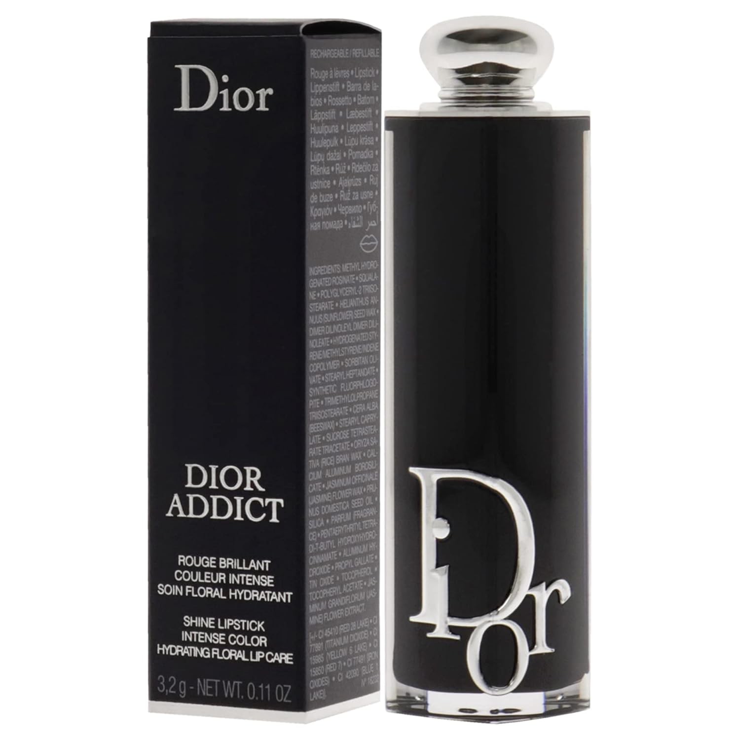 • A Dior Addict lipstick for up to 24 hours of hydration and up to six hours of color and shine, in a refillable couture case