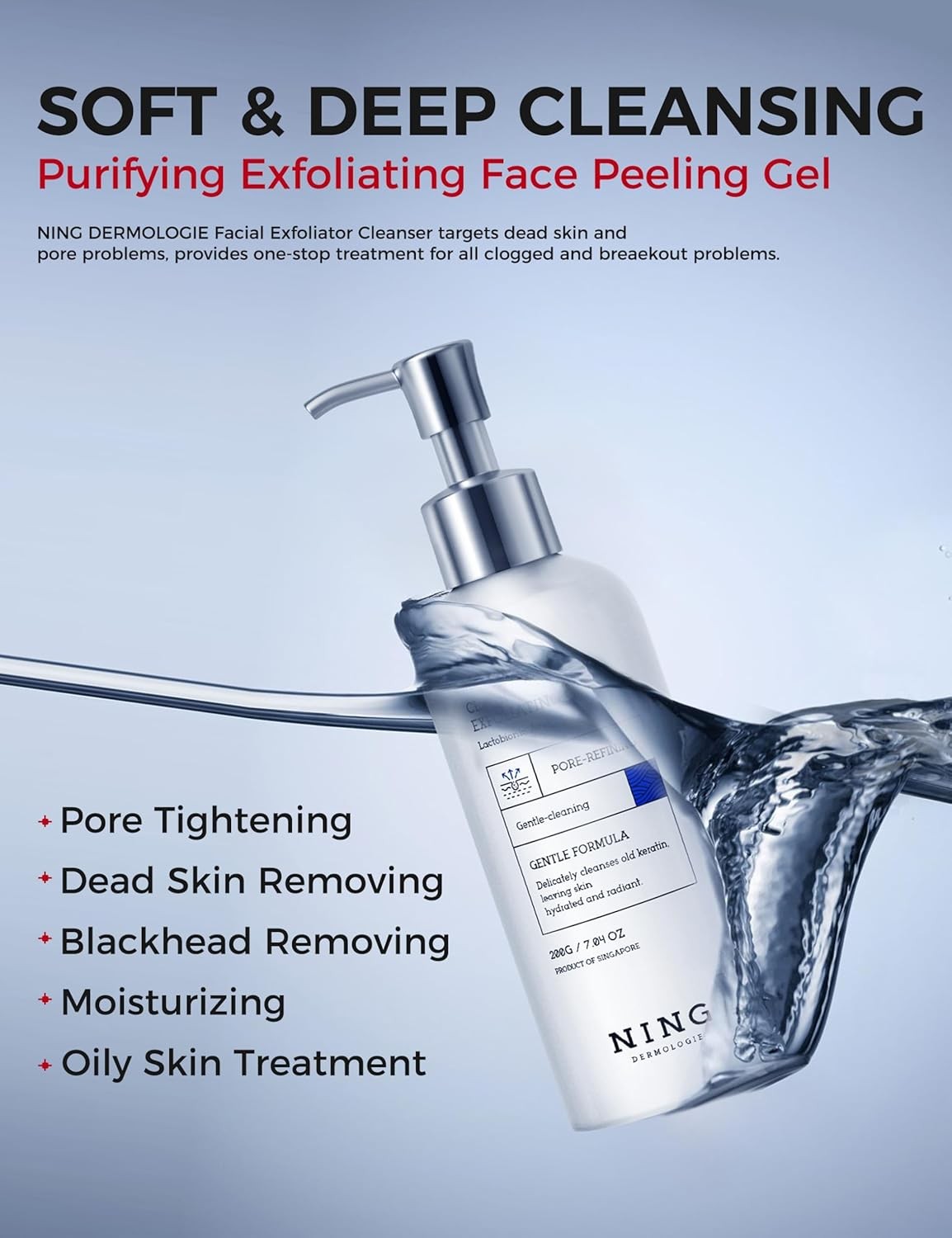 • GENTLE YET EFFECTIVE FACE EXFOLIATOR: NING DERMOLOGIE Peeling Gel combines AHA & PHA for a balanced exfoliation. AHA high-effectively dissolve dead skin cells, unclogs pores, and accelerates skin renewal, while PHA, a third-generation fruit acid, provides more gentle exfoliation, deep hydration, and antioxidant protection, improving skin texture. With continued use, pores appear more refined, and skin feels clean and refreshed without dryness or tightness.