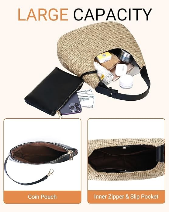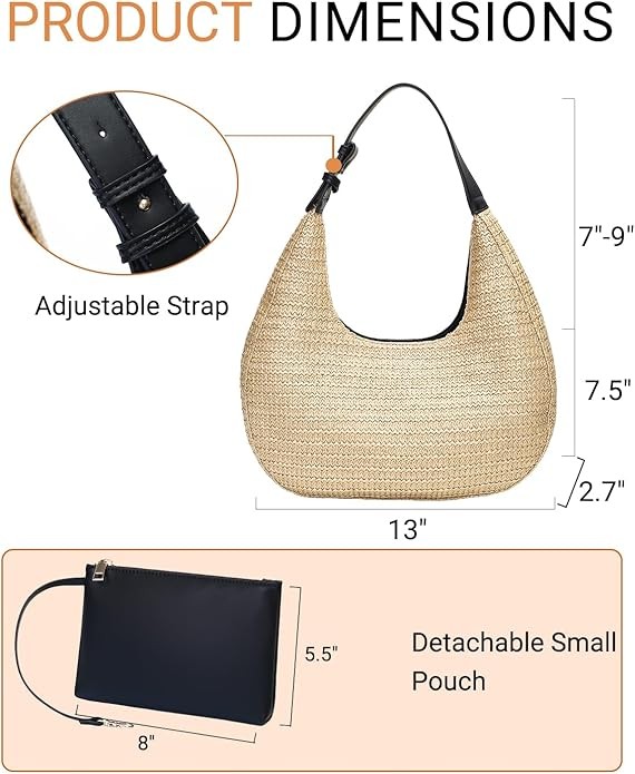 • [Large Roomy Capacity]: Measurement: 13" * 2.7"* 7.4"(L*W*H), Adjustable shoulder strap drop :7"-9". The designer wicker clutch features a main pocket, a zipper pocket inside, and 1 interior slip pocket, which can store cosmetics, wallets, keys, and cell phones, providing ample space for all your daily needs. Whether you're going to work, shopping, travel or attending a party, it's a great accessory.