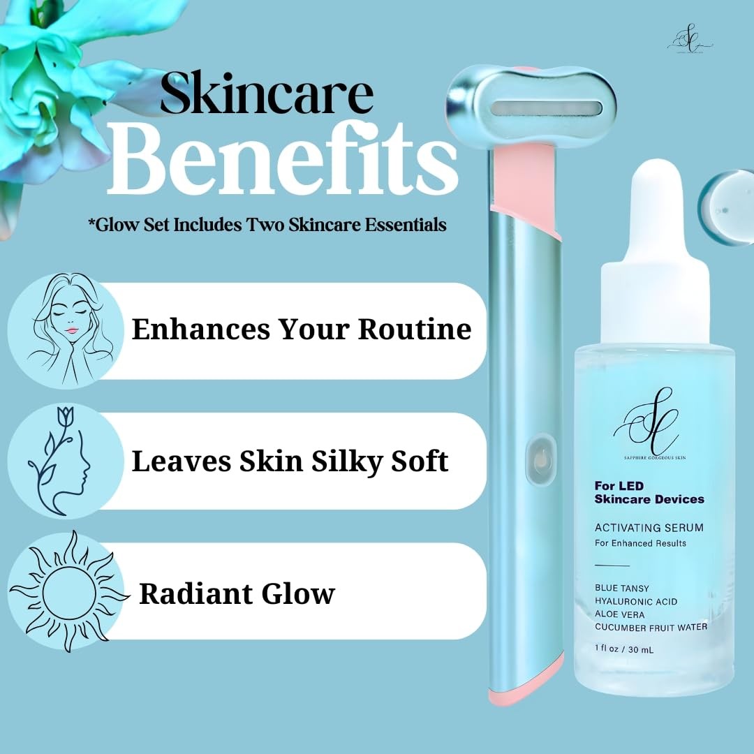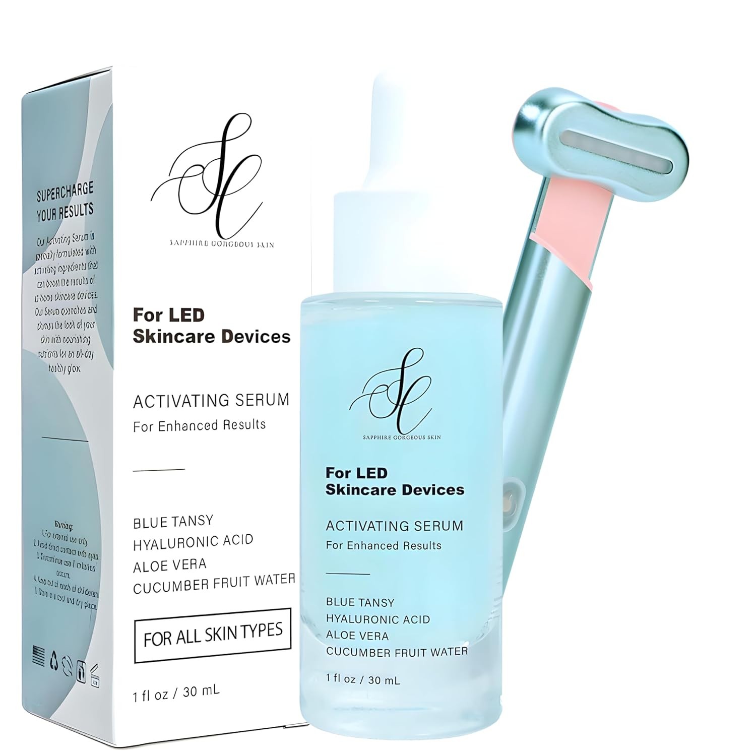 Red Light Therapy Skin Prep Gel | Amplifies LED Wands, Masks & Skincare Devices | Blue Tansy, Aloe, Cucumber & Hyaluronic Hydration | Clean Formula | Compatible Home Skincare Technology (Glow Set)