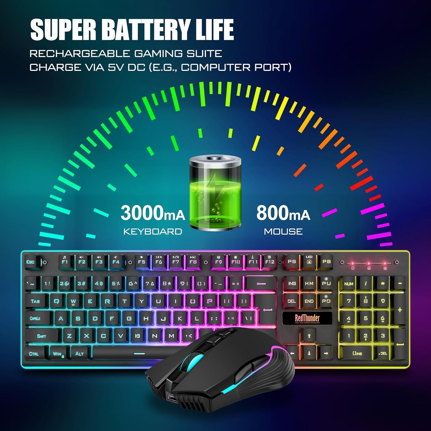 • 【High-performance 2.4G Wireless Keyboard and Mouse】Are you looking for a wireless keyboard and mouse combo that can perfectly balance work and games? RedThunder K10 rechargeable wireless gaming keyboard and mouse combo will be your best choice. 2.4G high-speed and stable transmission, ensure that it can easily deal with even the most intense battles. Note: The USB receiver is in the bottom of the mouse.